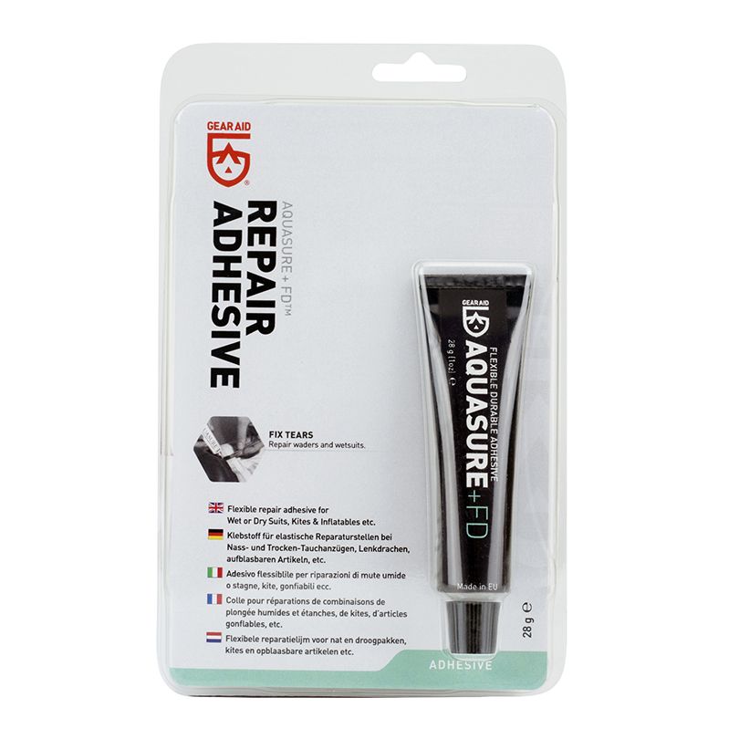 GearAid Aquasure +FD es el adhesivo de reparación más popular del mundo, ideal para diversas aplicaciones. Al secarse, deja un acabado elástico y no endurece la tela, lo que lo hace muy popular para remendar vadeadores, entre otras cosas. El adhesivo de reparación Aquasure es ideal para reparar daños en trajes de neopreno, equipo de vadeo o botes inflables, por ejemplo. Este adhesivo de reparación de uretano transparente e impermeable se adhiere permanentemente a las superficies y se seca transparente. Una vez curado, Aquasure es un adhesivo de caucho flexible y elástico, ideal para remendar equipo de exterior en constante movimiento. También ofrece una excelente resistencia a la abrasión. Muy versátil: se adhiere a todo tipo de telas impermeables para exteriores, como neopreno, caucho, nailon, tela y vinilo. GearAid Aquasure +FD es un excelente adhesivo de reparación para aplicaciones que requieren un acabado impermeable.