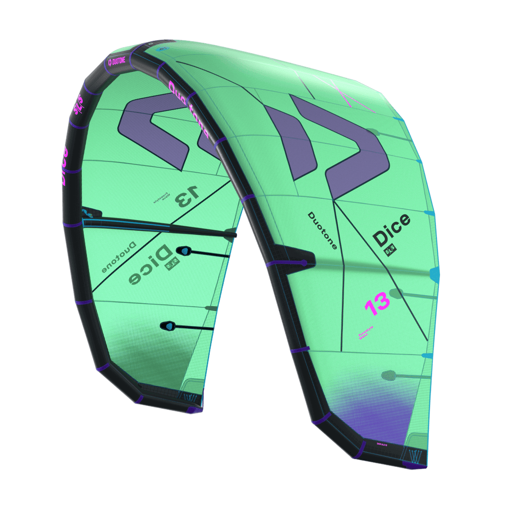 Esta cometa está diseñada para quienes buscan un pop explosivo y una holgura nítida en sus maniobras de freestyle. Dale un toque picante y experimenta una deriva sin esfuerzo mientras navegas por las olas, lo que te permitirá mantener la velocidad y el control mientras aprovechas la energía del océano. Con una potencia suave y equilibrada, la Dice SLS ofrece un rendimiento que inspira confianza en cualquier sesión. La Dice SLS ofrece una capacidad de giro rápida, lo que la convierte en una cometa sólida en todas las condiciones. Una de las mejoras clave es el recorrido de depower más largo, que permite una entrega de potencia más suave. La forma refinada del arco, con un centro más abierto y puntas agresivamente retraídas, mejora el rango de depower a la vez que mantiene un desarrollo de potencia progresivo para transiciones suaves. Se consigue una dirección más ligera gracias a mejoras en la tensión de la vela y su fijación en la punta. Esto mejora la transferencia de la dirección, reduciendo la presión en la barra sin comprometer la respuesta, ofreciendo a los riders una experiencia más atractiva en el agua. Otro punto a favor de la Dice SLS son los giros más rápidos y controlados. Gracias a la posición ajustada de los sables y a una estructura de vela mejorada, se minimiza el aleteo de la punta, lo que permite giros más cerrados, rápidos y precisos, esenciales tanto para loopings como para maniobras cerradas. En olas, la Dice SLS ofrece un manejo ágil y reactivo. Su respuesta de dirección mejorada y una entrega de potencia equilibrada la hacen ágil y fácil de maniobrar en olas dinámicas, permitiendo a los riders surcar las olas con facilidad. Además, la configuración optimizada de las bridas y la mejor distribución de la carga proporcionan un mayor control en condiciones racheadas o difíciles, garantizando la estabilidad ante vientos impredecibles. Por si fuera poco, la Dice SLS ha sido optimizada para el rendimiento en estilo libre. Una posición más profunda en la ventana de viento, combinada con una forma refinada, ofrece un pop explosivo y una holgura limpia, lo que facilita la ejecución de trucos técnicos con o sin gancho con confianza.